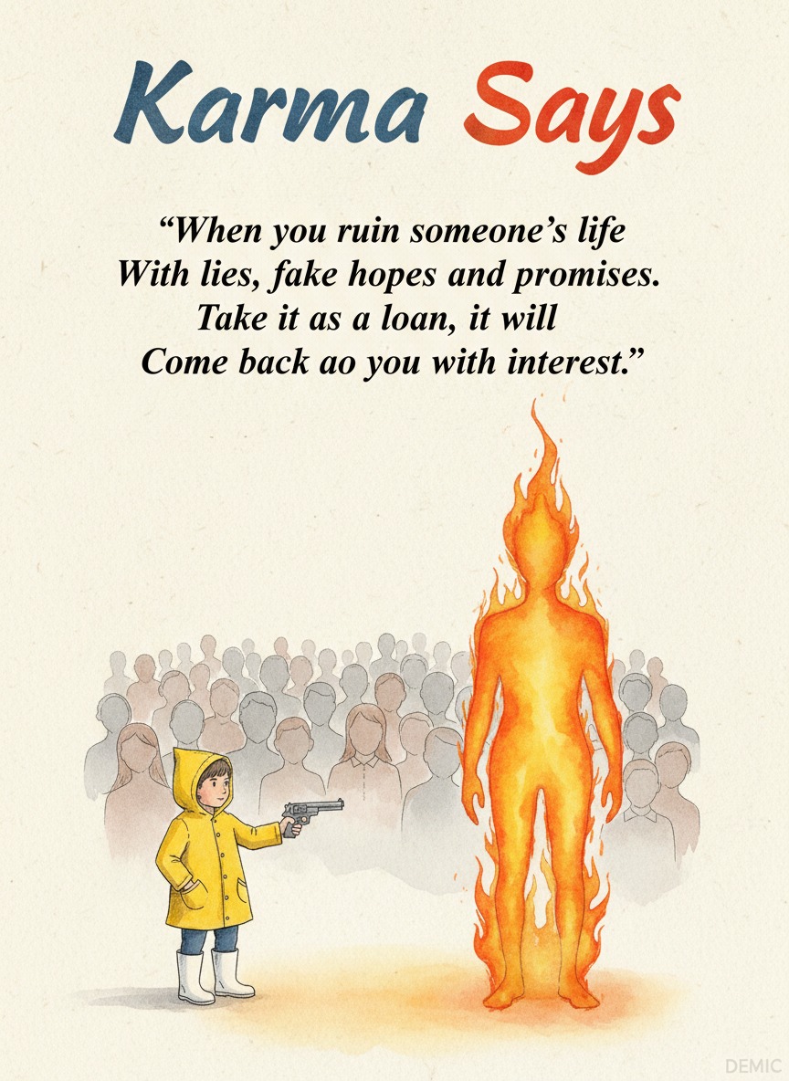 Karma is a powerful concept that suggests that our actions create a ripple effect, influencing not only our own lives but also the lives of others. The quote in the image emphasizes that deceit and betrayal can have long-lasting consequences, as the negativity we sow may ultimately return to us, often in unexpected ways.